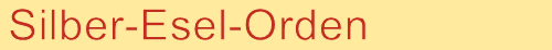 | Zurück zur Staatskanzlei Der Siber-Esel-Orden wurde im Jahr 1996 vom Grafen gegründet. _______________________________________________________________________________________________ Zu Rittern des "Siber-Esel-Orden" werden die jeweiligen Tapfersten des Vorjahres eines Balles für ihre herausragenden Verdienste am Grafen ernannt. Die Ritter des Ordens erhalten für alle Zeiten zu allen Bällen des Grafen freien Eintritt und Zugang. Sie werden dafür mit dem Orden des Silbernen Esels, der Urkunde und dem Siegel vom Grafen zu Rittern in den Silber-Esel-Orden erhoben! Die 29 Ritter des Silber-Esel-Ordens in chronologischer Reihenfolge ihrer Erhebung in den Ritterstand: 1. Lichterfest - 1995